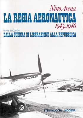 Storici e stupendi volumi di Nino Arena, stampati nel “lontano” 1978 dalla Stem Mucchi, una delle case editrici che nel passato hanno pubblicato ottimi l’ibri sull’aviazione italiana. Questi due volumi, perarltro in condizioni “perfette”, prendono in esame il periodo che va dal 1943 al 1946. Specificatamente, il primo volume analizza le vicende della Regia aeronautica dall’armistizio alla cobelligeranza con gli Alleati, mentre il secondo volume prende in esame il periodo della “guerra di liberazine” fino alla Repubblica nel 1946. Lo stile dei due volumi è quello classico della Stem Mucchi: testo molto dettagliato, numerose tabelle e organigrammi, riproposizione di documenti e 50 pagine di fotografie per ciascun volume (almeno 150 per singolo tomo). Sicuramente uno dei lavori più completi sulla “Regia” di quel travagliato periodo storico. Nino Arena si dimostra come uno dei più valenti storici aeronautici italiani. Molto raro