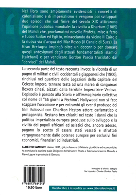 Nel libro sono ampiamente evidenziati i concetti di colonialismo e di imperialismo e vengono poi sviluppati due episodi che sul finire del secolo XIX attirarono l’opinione pubblica mondiale: la rivolta a Khartum (1885) del Mahdi che, proclamatosi novello Profeta, mise a ferro e fuoco Sudan ed Egitto, minacciando da vicino Il Cairo e la nuova via d’acqua del Mar Rosso (il Canale di Suez). La Gran Bretagna impiegò oltre un decennio per domare quegli antesignani degli attuali fondamentalisti islamici e per vendicare Gordon Pascià trucidato dai “dervisci” del Mahdi. La seconda parte del testo racconta invece la vicenda di un pugno di militari e civili occidentali e giapponesi che nel 1900, rinchiusi nel quartiere delle Legazioni della capitale del Celeste Impero, tennero testa ad una marea di sanguinari Boxers cinesi, aizzati dalla terribile Imperatrice-Vedova. L’episodio è passato alla Storia e all’immaginario collettivo col nome “I 55 giorni a Pechino”. Hollywood non si fece scappare l’occasione e per entrambi gli eventi produsse dei film Kolossal con Charlton Heston attore carismatico e protagonista.