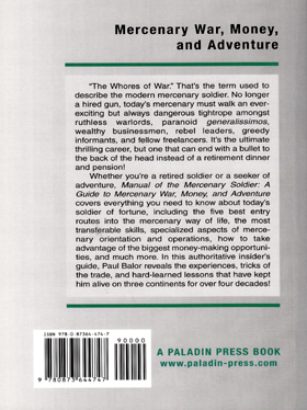 Questa esaustiva guida, introdotta da una breve storia della professione e della sua evoluzione, non solo delinea le tecniche e le tattiche per poter effettuare il lavoro nel miglior modo possibile ma, fornisce anche indicazioni sulle vie da seguire per entrare nell’ambito dei “soldati a pagamento” o, come si dicce attualmente, dei Contractors. Il mestiere del mercenario esiste dagli albori della civiltà, sono cambiate sicuramente le metodologie d’impiego e le strutture operative, ma la differenza cruciale rispetto al passato è che di questi tempi il concetto di “guerra” è quasi sempre considerato con una connotazione negativa, mentre fino alla Seconda Guerra Mondiale, la guerra era considerata come una conseguenza naturale della natura umana. Paul Balor rivela i trucchi, le esperienze del mestiere e le dure lezioni apprese che lo hanno tenuto in vita per più di quattro decenni di duro lavoro.