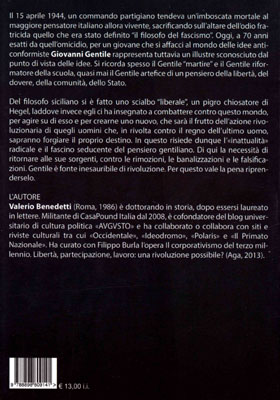 A 70 anni dal suo omicidio si ricorda spesso il Gentile “martire” e il Gentile riformatore della scuola, quasi mai il Gentile artefice di un pensiero della libertà, del dovere, della comunità, dello Stato. Non pigro chiosatore di Hegel egli ha insegnato a combattere contro questo mondo, per agire su di esso e per crearne uno nuovo, che sarà il frutto dell’azione rivoluzionaria di quegli uomini che, in rivolta contro il regno dell’ultimo uomo, sapranno forgiare il proprio destino. In questo risiede l’inattualità radicale e il fascino seducente del pensiero gentiliano. Di qui la necessità di ritornare alle sue sorgenti, contro le rimozioni, le banalizzazioni, le falsificazioni. Gentile è fonte inesauribile di rivoluzione. Per questo vale la pena di riprenderselo.