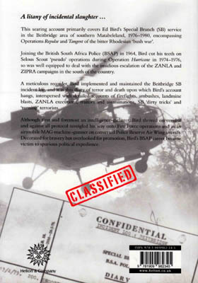 Questo studio analizza principalmente il Bird’s Special Branch (SB) service nella zona d’operazione del sud Matabeleland, negli anni 1976-1980, e in particolare le operazioni “Repulse” e “tangent” durante la spietata “guerra del bush in Rhodesia. L’unità si fece le ossa durante l’Operazione “Uragano” nel 1974-76, così, fu pronta e pienamente operativa per affrontare l’escalation insidiosa della campagna nel sud del paese. Il volume riporta accurate ricostruzioni tecniche degli avvenimenti, intervallati da resoconti dettagliati di scontri a fuoco, agguati, esplosioni di mine, esecuzioni, assassini , ecc. L’Autore racconta la sua esperienza in quella guerra “poco ortodossa”, ripercorrendo le fasi della sua carriera nell’esercito Rhodesiano, evidenziando anche che, seppur decorato per le azioni eseguite, non gli fu mai permesso di far carriera per motivazioni di convenienza politica. Un discreto apparato fotografico, in b/n e a colori, accompagna questo interessantissimo testo.