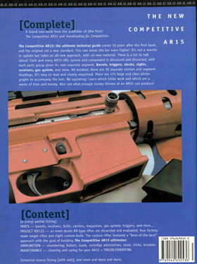 Il volume può essere considerato la guida definitiva riguardo le armi con meccanica Ar-15 destinate alle competizioni sportive. Il lavoro da uno sguardo approfondito ad ogni componente del sistema, suddividendo il tutto in trenta elementi e offre instruzioni dettagliate su una dozzina di armi diverse. I lavori di customizzazione vengono eseguiti a secondo della provenienza delle armi: versioni custom in origine o fucili di servizio, in base a questo viene presa la decisione su come modificare l’arma, ovviamente anche in base all’utilizzo che se ne vuole fare; carabine tattiche, varmint, e anche dei cal. 22. Il testo contiene molte altre informazioni che il tiratore potrà utilizzare per migliorare la propria arma.