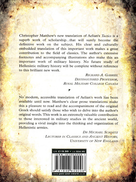 Nuova traduzione – con testo greco a fronte -, commentata e annotata, del Manuale che ha influenzato le tattiche di guerra per quindici secoli. Di Aeliano, autore del trattato di tattica, poco si conosce, tranne che questo lavoro era stato originalmente redatto per l’Imperatore Traiano ma, in seguito, dedicato all’Imperatore Adriano. Il manuale si basa sullo studio dei sistemi tattici utilizzati da Alessandro il Grande e dai suoi successori dei cinquecento anni successivi. Questo lavoro, soprattutto le annotazioni, rappresenta un importante strumento di studio per storici e appassionati di studi militari. Il testo è completato da 32 tavole in b/n.