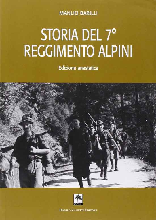 Edizione anastatica del libro sulla storia del 7° Reggimento Alpini scritto nel 1958 da Manlio Barilli. Questo non è un libro di memorie, ove il racconto personale e le emozioni costituiscono l’essenza della narrazione; è invece un libro di storia che riordina sistematicamente fatti, luoghi e date. Eppure, esso sa suscitare forte emozione e rispetto se la nostra mente riesce ad immedesimarsi negli uomini che dei fatti narrati sono stati protagonisti. Senza tale lavoro storico sarebbe più arduo e, nel tempo, forse parzialmente impossibile, conoscere una parte del nostro migliore passato nazionale e avere il ricordo di concreti motivi per esserne orgogliosi continuatori.